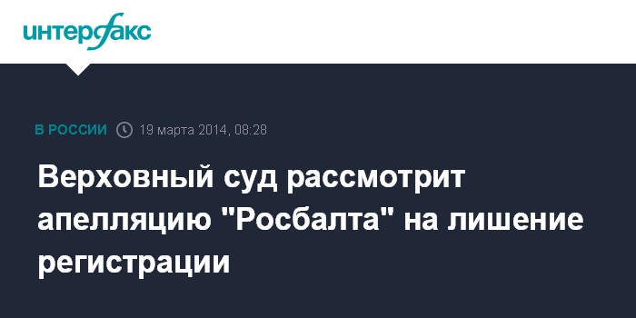 Москва. 19 марта. INTERFAX.RU - Судебная коллегия по гражданским делам Верховного суда РФ в среду проверит законность решения о признании недействительным свидетельства о регистрации информагентства "Росбалт" по представлению Роскомнадзора.