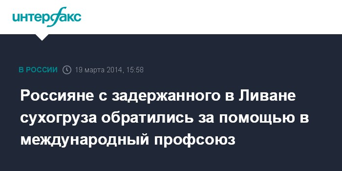Новороссийск. 19 марта. INTERFAX.RU - В Международной федерации транспортных рабочих (МФТ) внимательно следят за судьбой российских моряков на молдавском судне Rhosus (Ливан), оставшихся без средств к существованию в порту Бейрута с октября 2013 года, сообщила инспектор МФТ в Новороссийске Ольга Ананьина.