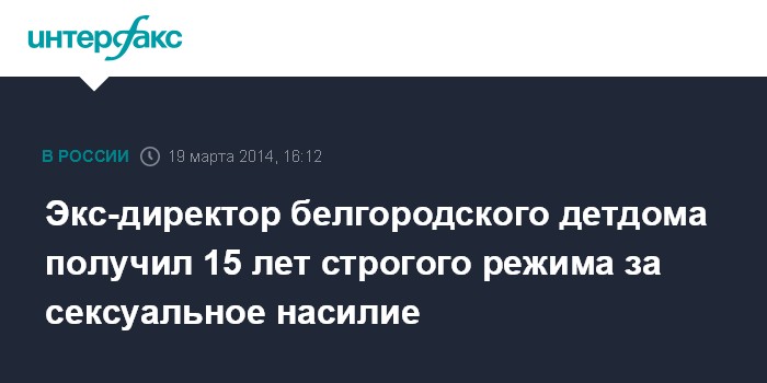 Белгород. 19 марта. INTERFAX.RU - Белгородский областной суд в среду огласил приговор бывшему директору Старооскольского детского дома, обвиненному в сексуальном насилии над несовершеннолетними, мошенничестве и превышении полномочий, сообщили "Интерфаксу" в пресс-службе облсуда.