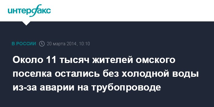 Москва. 20 марта. INTERFAX.RU - Авария произошла на магистральном водопроводе в поселке Кормиловка Омской области, в результате под отключение водоснабжения попали более тысячи объектов, сообщает пресс-служба ГУ МЧС по региону.