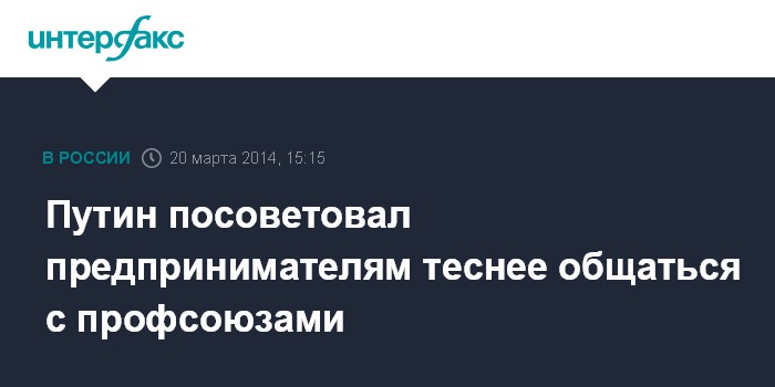 Москва. 20 марта. INTERFAX.RU - Все вопросы, связанные с гибкостью рынка труда при непростой ситуации в российской и мировой экономике, нужно решать в прямом диалоге с профсоюзами, считает президент РФ Владимир Путин.
