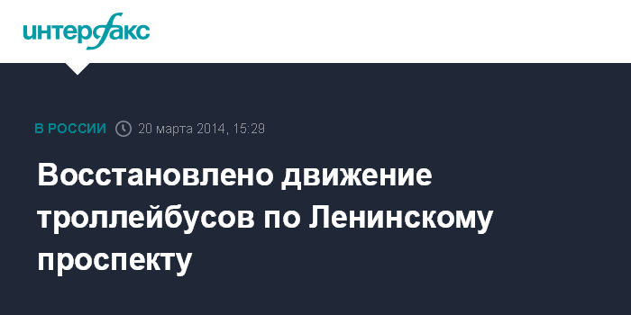 Москва. 20 марта. INTERFAX.RU - Восстановлено движение троллейбусов маршрутов №№4, 7, 33, 62, 84, следующих по Ленинскому проспекту, сообщает пресс-служба столичного департамента транспорта.