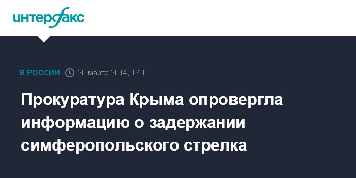 Симферополь. 20 марта. INTERFAX.RU - В прокуратуре Крыма не подтверждают информацию о задержании снайпера, убившего двух человек 18 марта на ул. Кубанской в Симферополе.