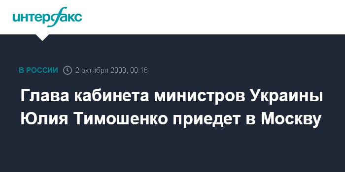 Москва. 2 октября. ИНТЕРФАКС - Премьер-министр Украины Юлия Тимошенко посетит Москву с рабочим визитом 2 октября по приглашению председателя правительства России Владимира Путина.