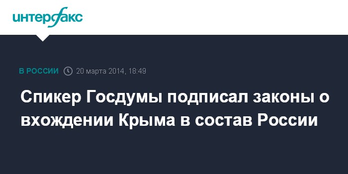 Cпикер Госдумы подписал законы о вхождении Крыма в состав России