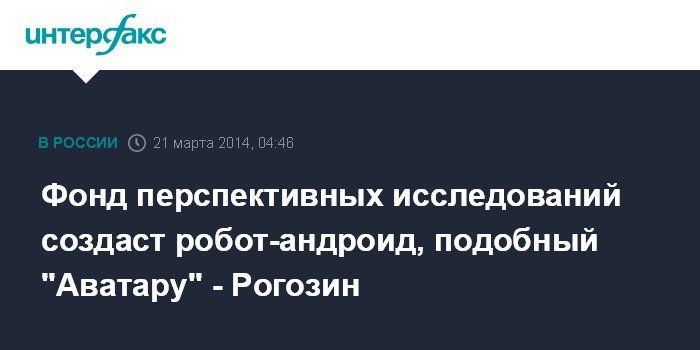 Фонд перспективных исследований создаст робот-андроид, подобный "Аватару" - Рогозин