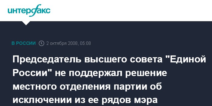 Председатель высшего совета "Единой России" не поддержал решение местного отделения партии об исключении из ее рядов мэра Благовещенска - газета