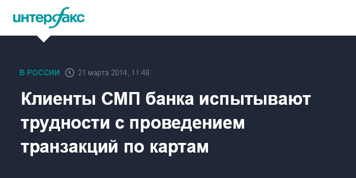 Москва. 21 марта. INTERFAX.RU - Клиенты СМП банка, подконтрольного Аркадию и Борису Ротенбергам, в пятницу испытывают трудности с проведением транзакций по банковским картам.