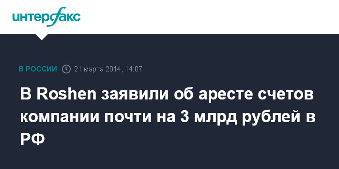 Москва. 21 марта. INTERFAX.RU - Тверской суд Москвы в рамках гражданского иска, инициированного холдингом "Объединенные кондитеры" против российских предприятий корпорации Roshen, наложил арест на счета компании в РФ, говорится в заявлении Roshen.