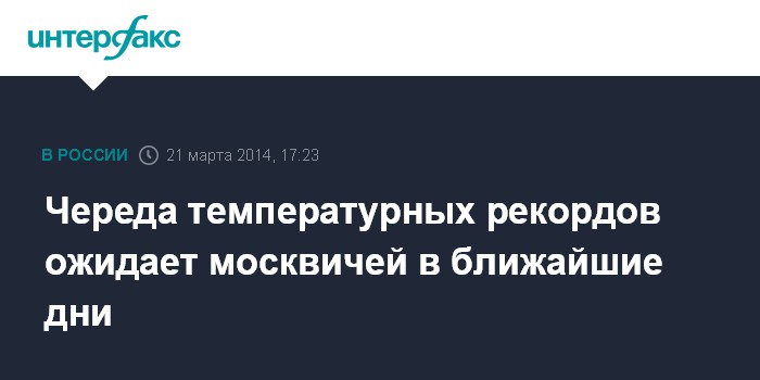 Москва. 21 марта. INTERFAX.RU - В ближайшие несколько дней в столице ожидается рекордно высокая температура воздуха, сообщили "Интерфаксу" в Гидрометеобюро Москвы и Московской области.