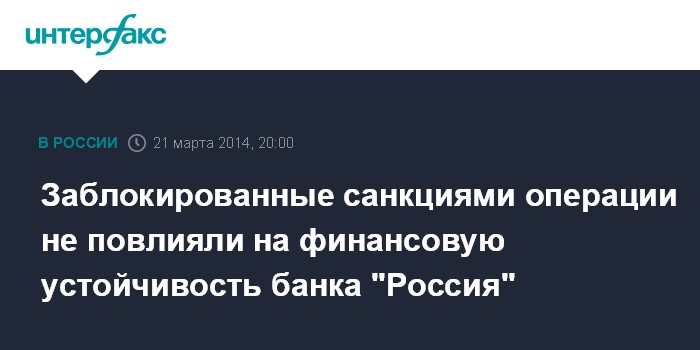 Заблокированные санкциями операции не повлияли на финансовую устойчивость банка "Россия"