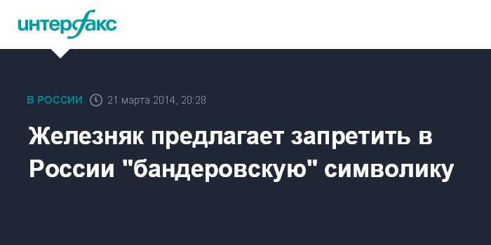 Москва. 21 марта. INTERFAX.RU - Вице-спикер Госдумы от "Единой России" Сергей Железняк внес в пятницу в нижнюю палату парламента законопроект, вводящий запрет на использование бандеровской символики.