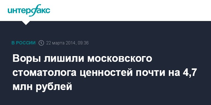 Воры лишили московского стоматолога ценностей почти на 4,7 млн рублей
