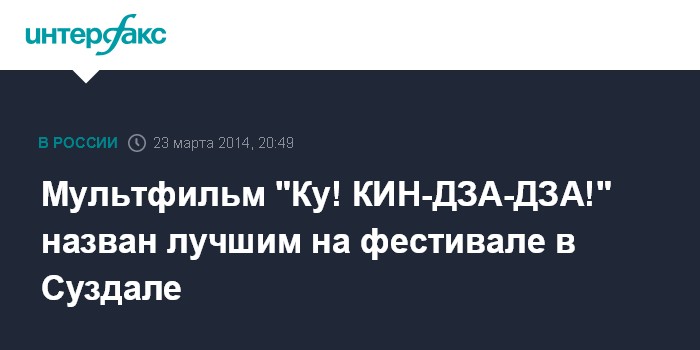 Москва. 23 марта. INTERFAX.RU - Лучшим полнометражным мультфильмом на фестивале анимационного кино в Суздале признан фильм "Ку! КИН-ДЗА-ДЗА!", передает корреспондент "Интерфакса".