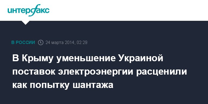 В Крыму уменьшение Украиной поставок электроэнергии расценили как попытку шантажа