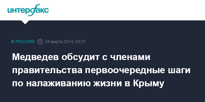 Медведев обсудит с членами правительства первоочередные шаги по налаживанию жизни в Крыму