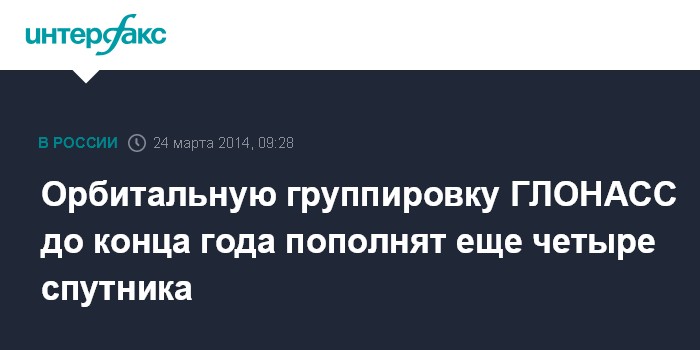 Москва. 24 марта. INTERFAX.RU - В интересах пополнения и развития орбитальной группировки ГЛОНАСС в 2014 году намечено вывести на орбиту 4 аппарата "Глонасс-М", сообщили "Интерфаксу-АВН" в ОАО "Информационные спутниковые системы" (ИСС, Железногорск).