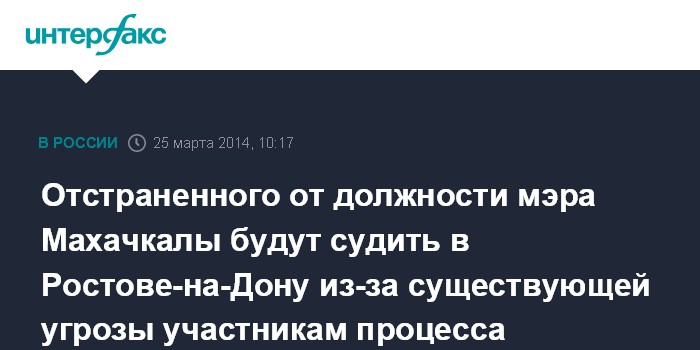 Отстраненного от должности мэра Махачкалы будут судить в Ростове-на-Дону из-за существующей угрозы участникам процесса