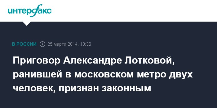 Приговор Александре Лотковой, ранившей в московском метро двух человек, признан законным