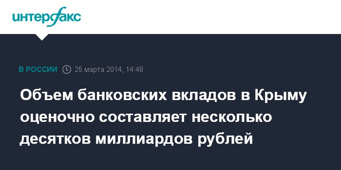 Объем банковских вкладов в Крыму оценочно составляет несколько десятков миллиардов рублей