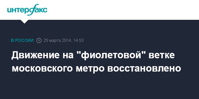 Движение на "фиолетовой" ветке московского метро восстановлено