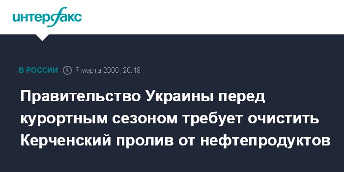 Киев. 7 марта. ИНТЕРФАКС-УКРАИНА - Первый вице-премьер Украины Александр Турчинов потребовал провести анализ экологической ситуации в Керченском проливе и прилегающих территориях и обеспечить благоприятные условия для проведения курортного сезона.