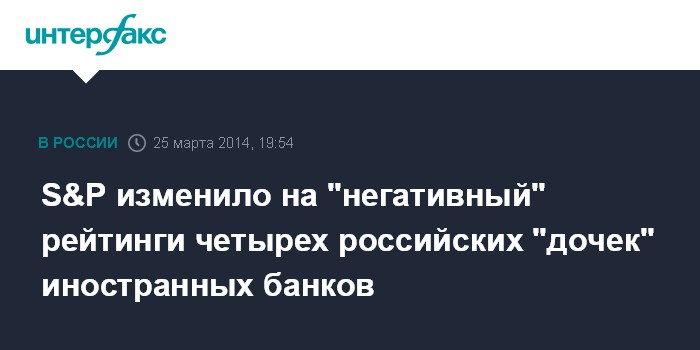 S&P изменило на "негативный" рейтинги четырех российских "дочек" иностранных банков