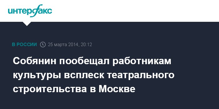 Москва. 25 марта. INTERFAX.RU - В 2014 году Москву ожидает всплеск театрального строительства, заявил мэр столицы Сергей Собянин во вторник в поздравлении на концерте в честь Дня работника культуры.