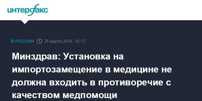 Минздрав: Установка на импортозамещение в медицине не должна входить в противоречие с качеством медпомощи