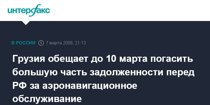 Грузия обещает до 10 марта погасить большую часть задолженности перед РФ за аэронавигационное обслуживание