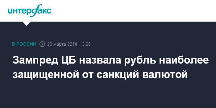 Москва. 26 марта. INTERFAX.RU - Рубль является защищенной валютой с точки зрения защиты от санкций, заявила первый зампред ЦБ РФ Ксения Юдаева на конференции в Госдуме.