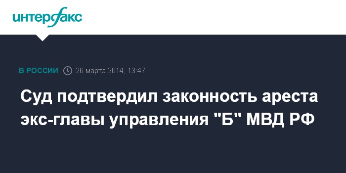 Суд подтвердил законность ареста экс-главы управления "Б" МВД РФ