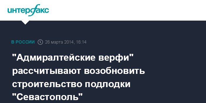Москва. 26 марта. INTERFAX.RU - ОАО "Адмиралтейские верфи" рассчитывает на возобновление контракта по строительству дизель-электрической подводной лодки проекта 677 ("Лада") "Севастополь" для ВМФ РФ, сообщили "Интерфаксу" в пресс-службе верфи в среду.