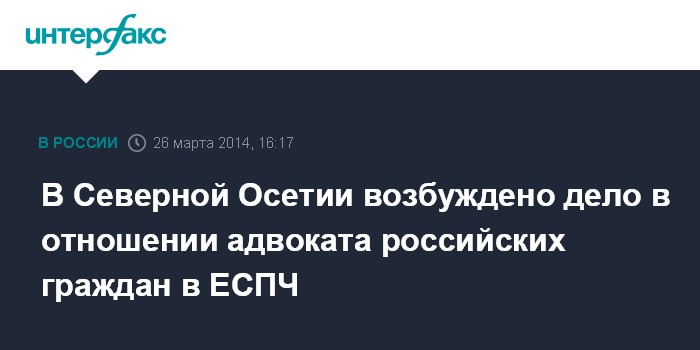 В Северной Осетии возбуждено дело в отношении адвоката российских граждан в ЕСПЧ