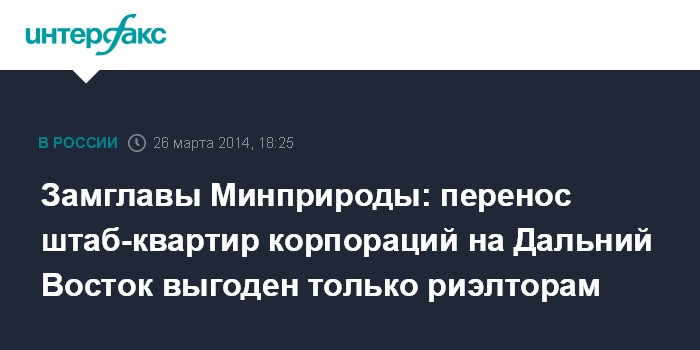 Замглавы Минприроды: перенос штаб-квартир корпораций на Дальний Восток выгоден только риэлторам