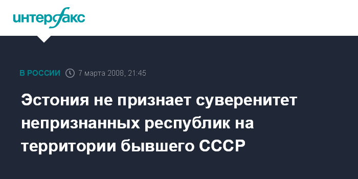 Эстония не признает суверенитет непризнанных республик на территории бывшего СССР