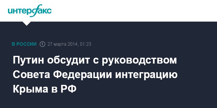 Путин обсудит с руководством Совета Федерации интеграцию Крыма в РФ