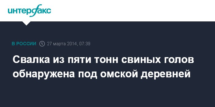 Омск. 27 марта. INTERFAX.RU - Надзорные органы проводят проверку по факту обнаружения вблизи одной из омских деревень свалки свиных голов, сообщает пресс-служба прокуратуры Омской области.
