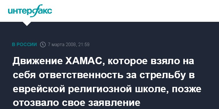 Движение ХАМАС, которое взяло на себя ответственность за стрельбу в еврейской религиозной школе, позже отозвало свое заявление