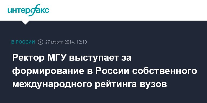 Москва. 27 марта. INTERFAX.RU - Ректор МГУ им. Ломоносова Виктор Садовничий предложил создать в России собственный международный рейтинг вузов в противовес западным.