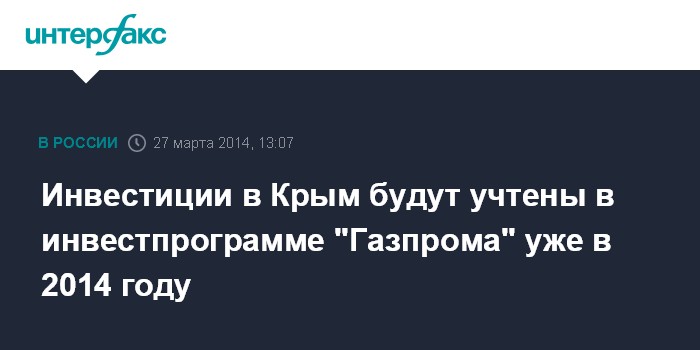 Инвестиции в Крым будут учтены в инвестпрограмме "Газпрома" уже в 2014 году