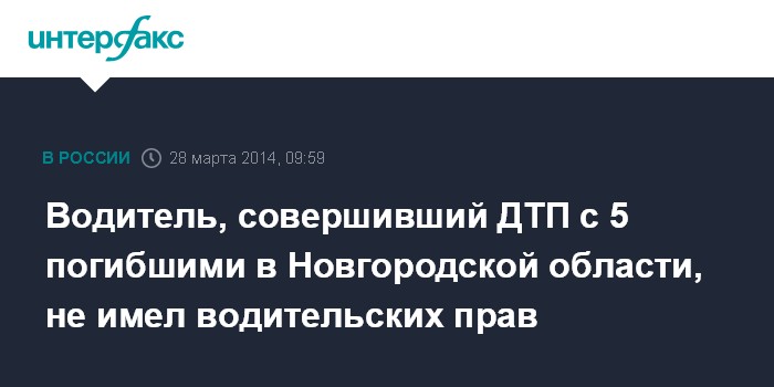 Великий Новгород. 28 марта. INTERFAX.RU - Водитель легкового автомобиля, ставший участником дорожной аварии с пятью погибшими в Новгородской области, не имел права на управление транспортным средством, сообщает пресс-служба УМВД России по Новгородской области.