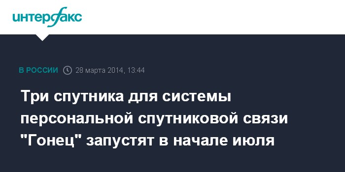 Москва. 28 марта. INTERFAX.RU - Тройка космических аппаратов системы персональной спутниковой связи "Гонец" готова к запуску, сообщил "Интерфаксу" на международной выставке военной и авиакосмической техники FIDAE-2014 гендиректор компании "Информационные спутниковые системы" им. Решетнёва" (ИСС, Железногорск, Красноярский край) Николай Тестоедов.