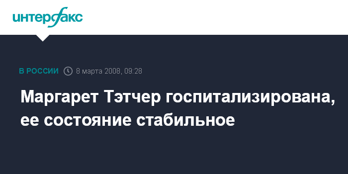 Маргарет Тэтчер госпитализирована, ее состояние стабильное