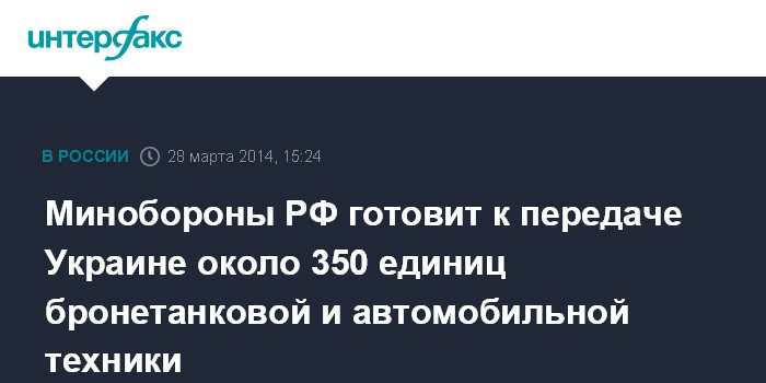 Москва. 28 марта. INTERFAX.RU - Российская сторона заинтересована в вывозе на территорию Украины оставшейся в Крыму украинской бронетанковой техники, сообщил в пятницу "Интерфаксу" источник, осведомленный о ходе переговоров военных ведомств России и Украины.