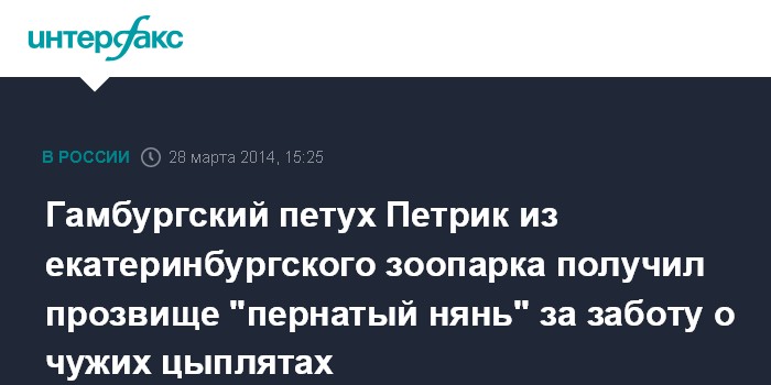 Екатеринбург. 28 марта. INTERFAX.RU - Петух гамбургской породы по имени Петрик, который живет в контактном зоопарке Екатеринбургского парка бабочек, взял на себя заботу о малышах-цыплятах, сообщила в пятницу агентству "Интерфакс" менеджер парка Наталья Пяжева.