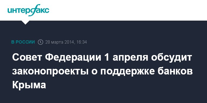 Совет Федерации 1 апреля обсудит законопроекты о поддержке банков Крыма