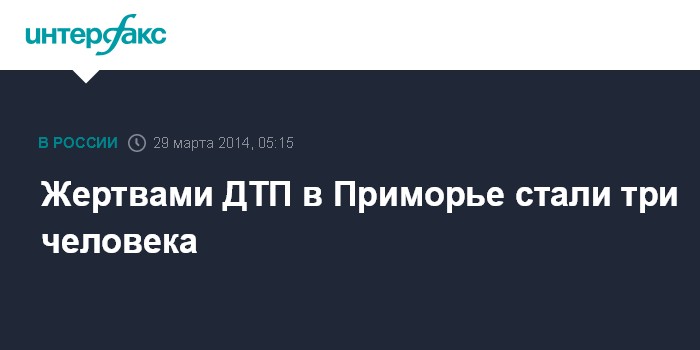 Москва. 29 марта. INTERFAX.RU - Два грузовика столкнулись в субботу в Приморье в районе поселка Заводской, в результате погибли три человека, еще один пострадал.