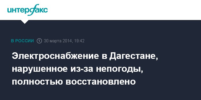 Пятигорск. 30 марта. ИНТЕРФАКС-ЮГ - Энергетики в воскресенье восстановили электроснабжение в ряде населенных пунктов Дагестана, нарушенное из-за непогоды, сообщил в воскресенье начальник департамента по связям с общественностью МРСК Северного Кавказа Виталий Струговец.
