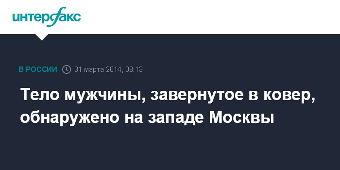Москва. 31 марта. INTERFAX.RU - Тело мужчины с травмами головы обнаружено на улице на западе столицы завернутым в ковер, сообщил "Интерфаксу" источник в правоохранительных органах.